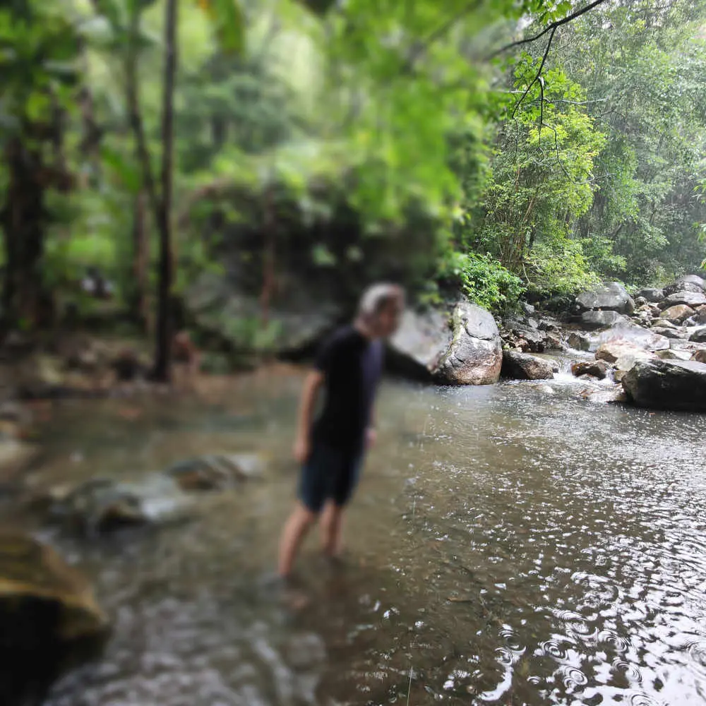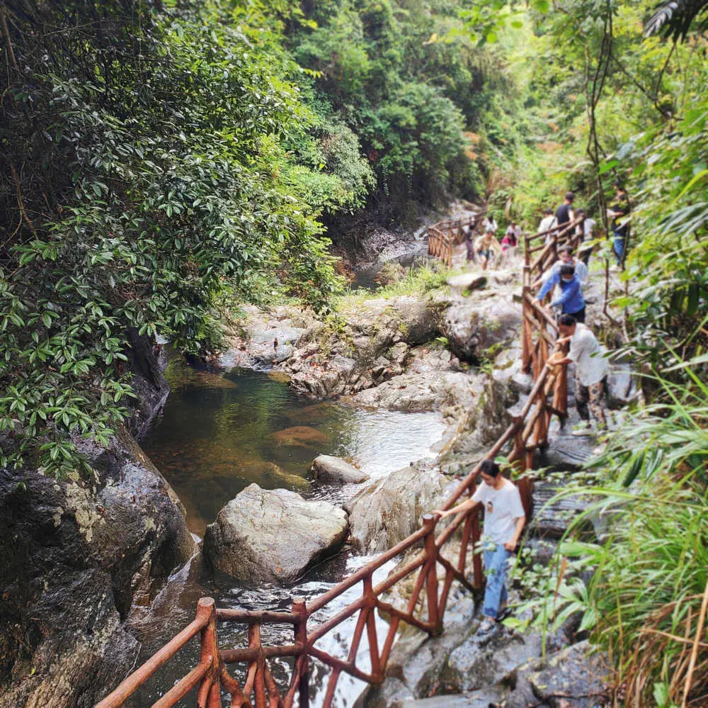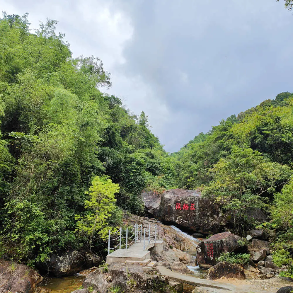 六月九日,跟隨大部隊到從化溫泉鎮開會。山河陰雲之下,流溪河畔枯坐聽雨。六月十日上午,跟隨大部隊到良口鎮三椏塘峽谷一遊。穿越峽谷期間,暴雨如注,間或到碎石溪中嬉水。