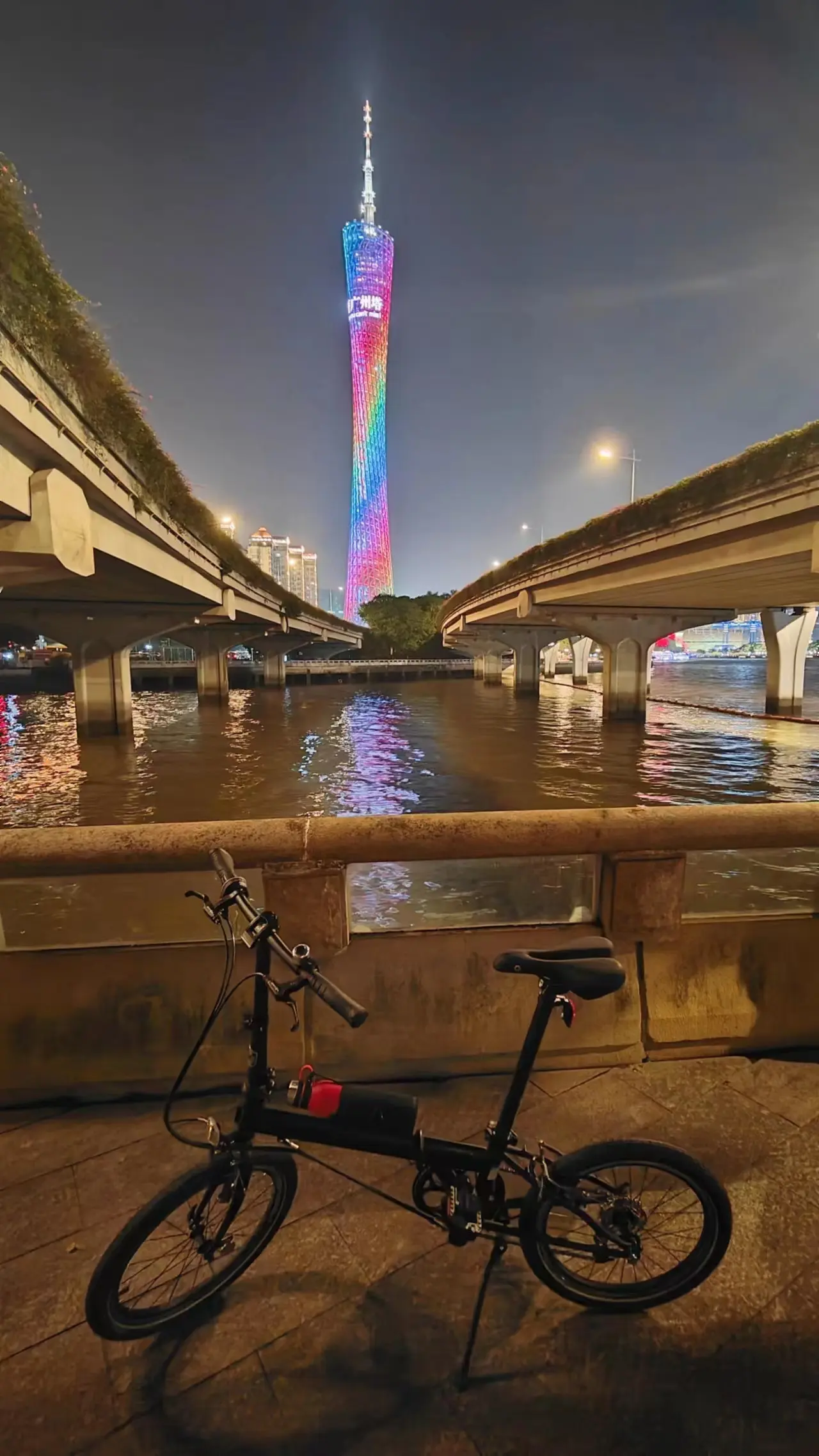 喜德盛公路車轉賣出去後,迅即購入了大行 P8 折疊車。一直以爲折疊車都是兒童單車或玩具單車,孰料人家做工很專業,騎行速度飆起來,不亞於公路車。埋首書冊了無日,不如拋卻去尋春。趁着國慶假期,終於推車登上獵德大橋,到江對岸塔下騎行。在橋上、橋下選景,爲第三輛單車拍攝了定裝照。