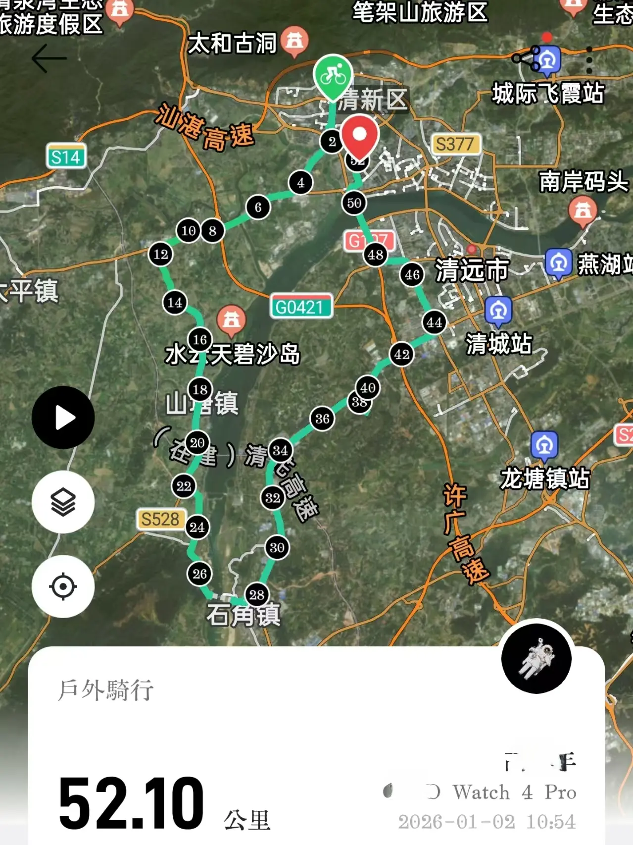 Precise Location 新年同遊,從早到晚,環繞北江,騎行六十公里。惟此路線多國道,大掛車很多,既不安全,又多粉塵。以後不會再騎這條路線了。 上午天之藍如清新 傍晚紅黃綠藍斑駁 月出於東山之上 新年百里騎 ✍️ The article was recently updated on Tuesday, January 20, 2026, 08:47:26 by 👩高松年.